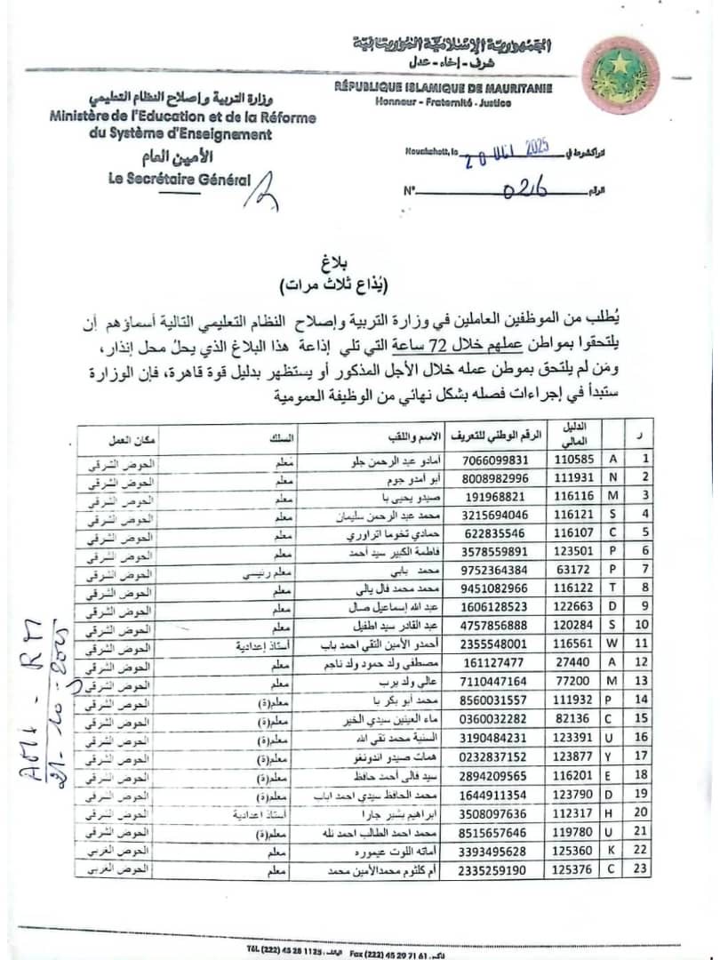 وقالت الوزارة في بلاغها، إن المدرسين المعنيين إذا لم يلتحقوا بمواطن عملهم خلال 72 ساعة أو يستظهروا بدليل قوة قاهرة فإنها ستبدأ في إجراءات فصلهم بشكل نهائي من الوظيفة العمومية.