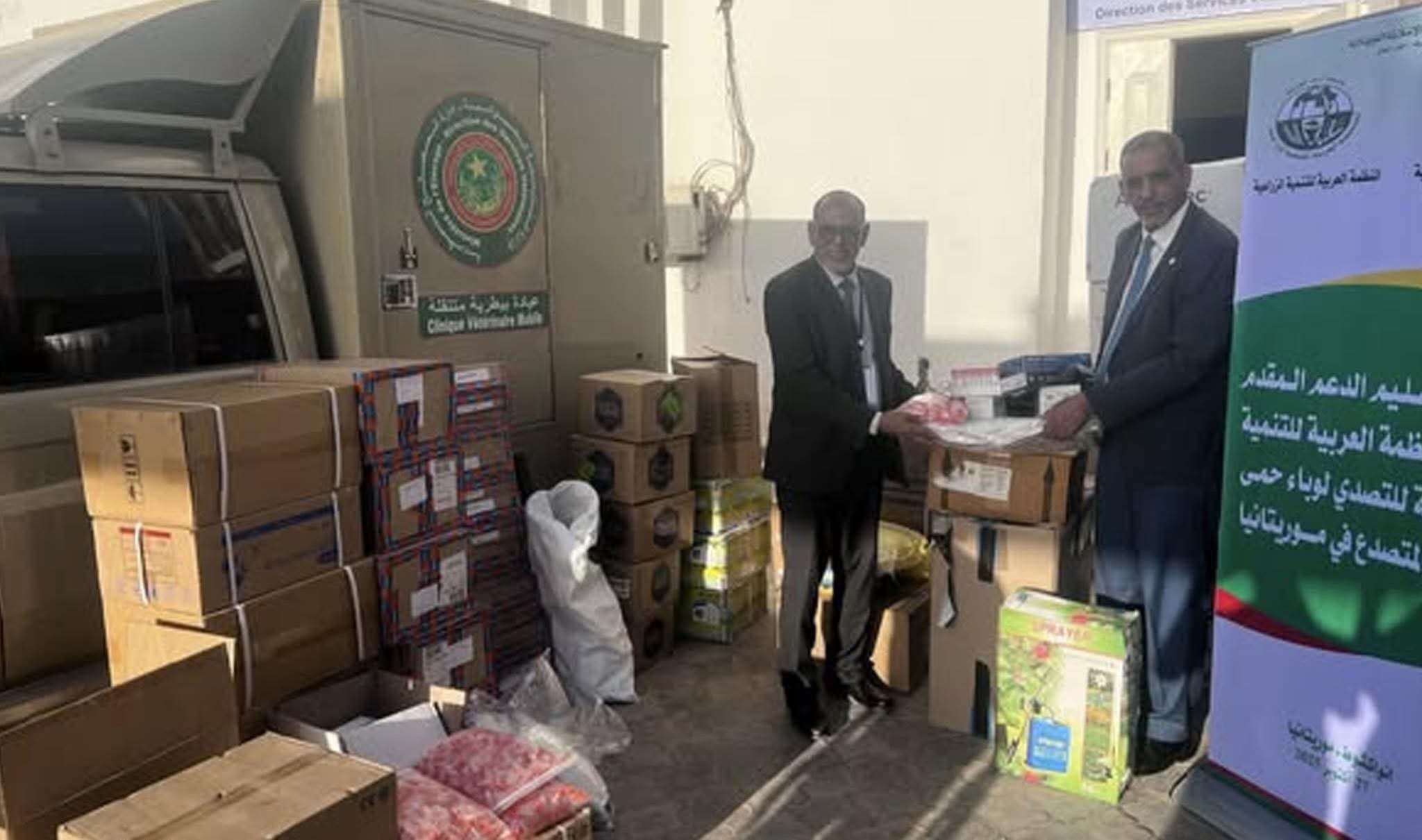 تسلمت موريتانيا الاثنين دفعة جديدة من مواد وأجهزة مكافحة البعوض إلى جانب أدوات وقاية ميدانية قدمتها المنظمة العربية للتنمية الزراعية، دعما لجهود البلاد في مواجهة تفشي حمى الوادي المتصدع.