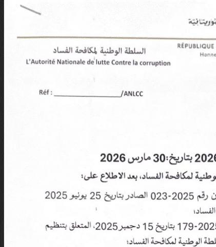 أعلنت لجنة انتقاء أعضاء مجلس السلطة الوطنية لمكافحة الفساد في موريتانيا، عبر مداولة رسمية اعتماد اللائحة الأولية للمترشحين المقبولين لعضوية مجلس السلطة.