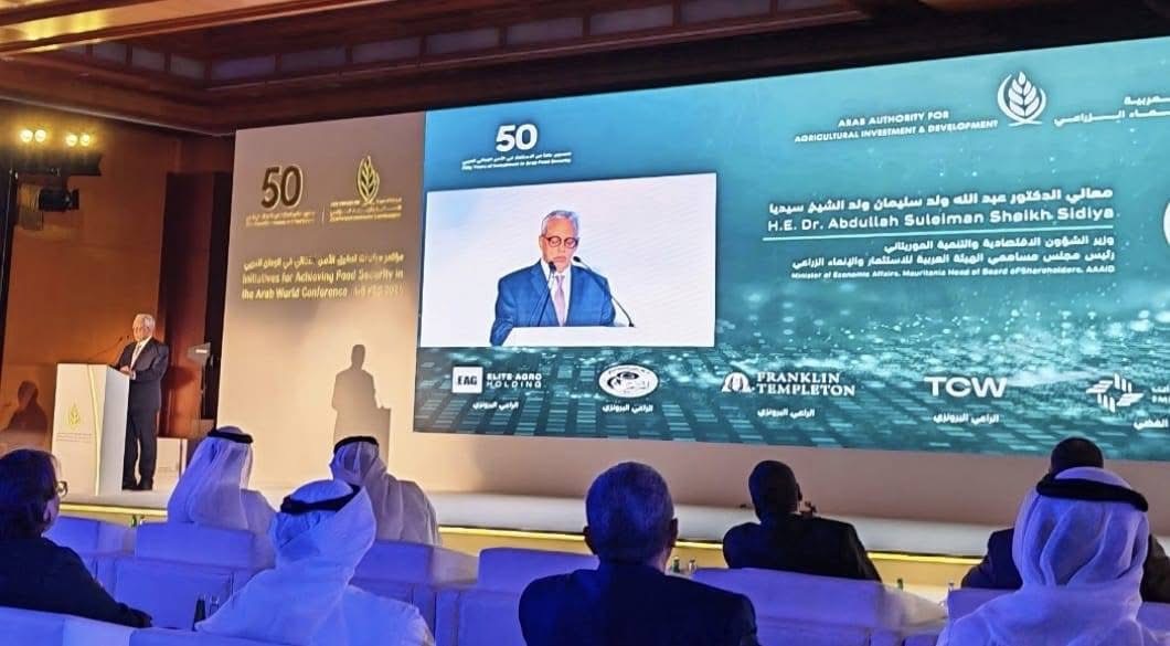 جاء حديث الوزير، اليوم الأربعاء، خلال مؤتمر الهيئة العربية للاستثمار والإنماء الزراعي الذي انطلق في مدينة دبي الإماراتية، تحت رئاسة موريتانيا.